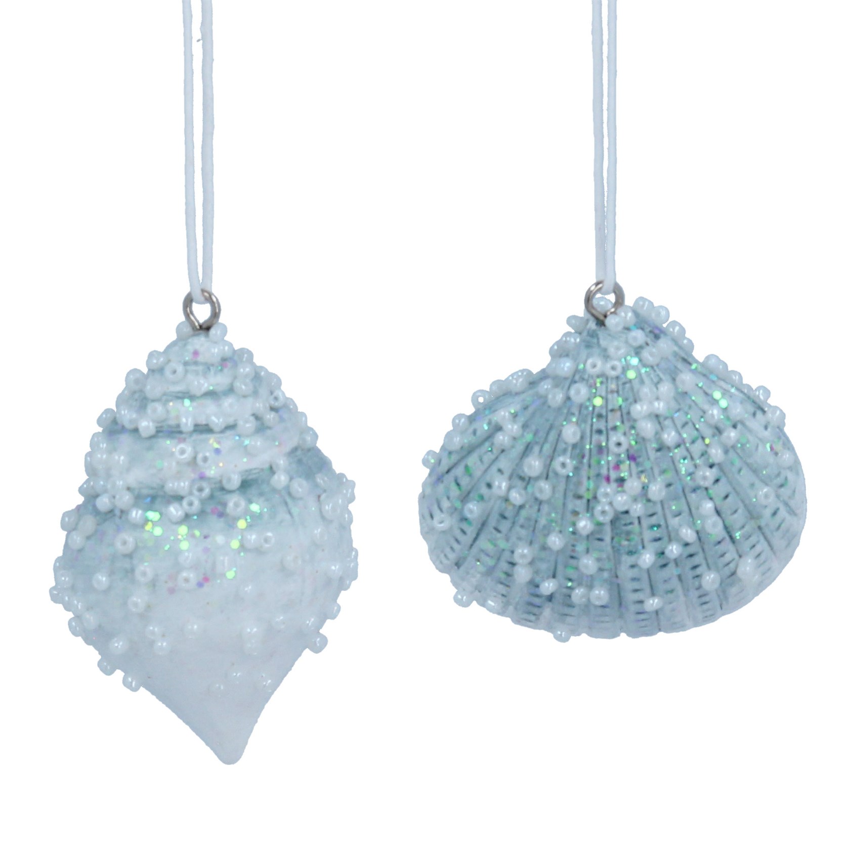 These pretty pale blue resin seahell decorations are from designer Gisela Graham.